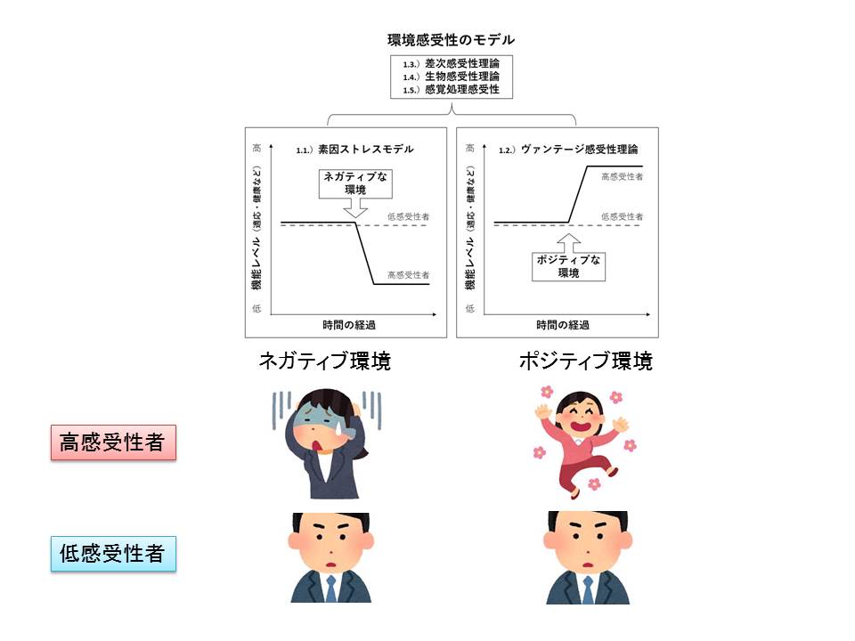 「環境感受性」という概念は、ポジティブあるいはネガティブな環境に置かれた時、どのような反応を示すかについてまとめた複数の理論を一つに統合したものです。