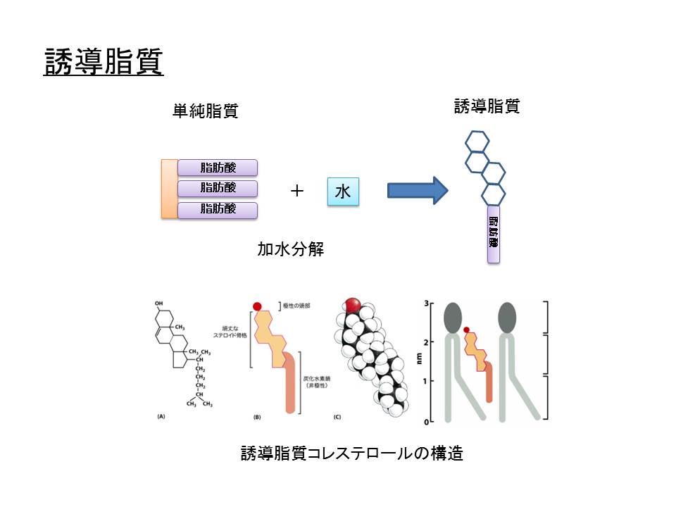 ・誘導脂質は脂肪酸、ステロイド(コレステロール)
