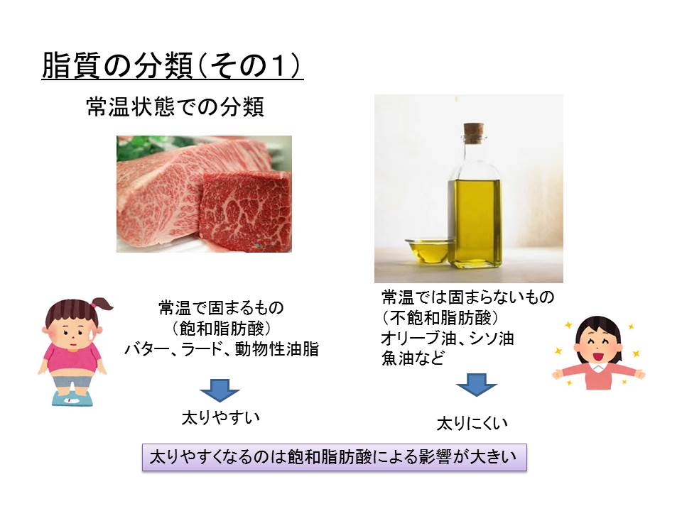 脂質は、常温で固まるものと固まらないものに大きく分類できます。