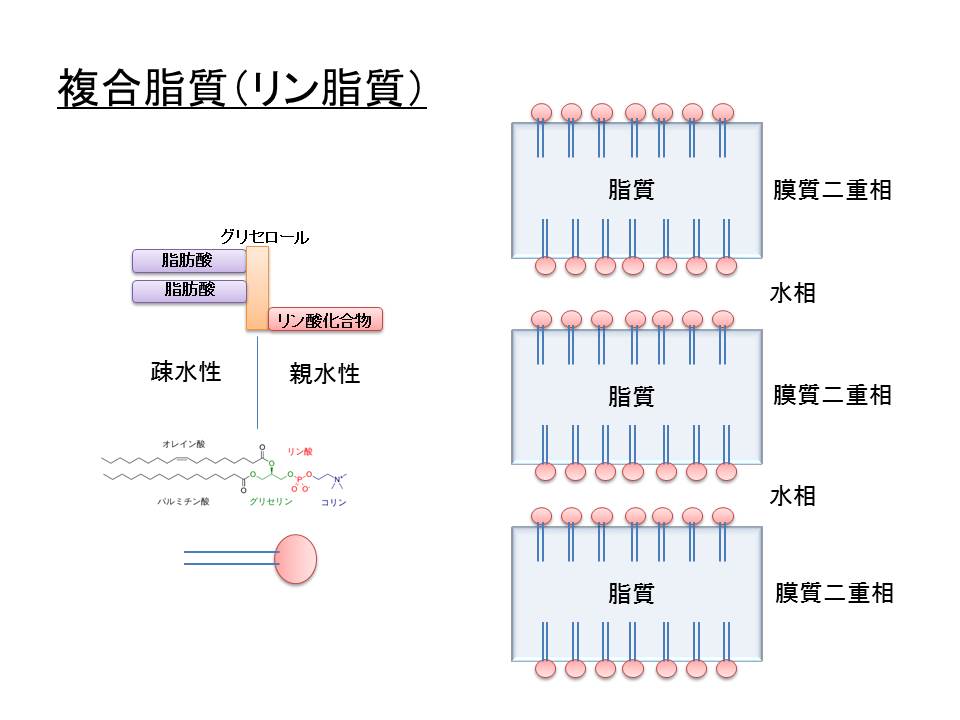 2.複合脂質(リン脂質、糖脂質)・・・・細胞膜に重要な役割