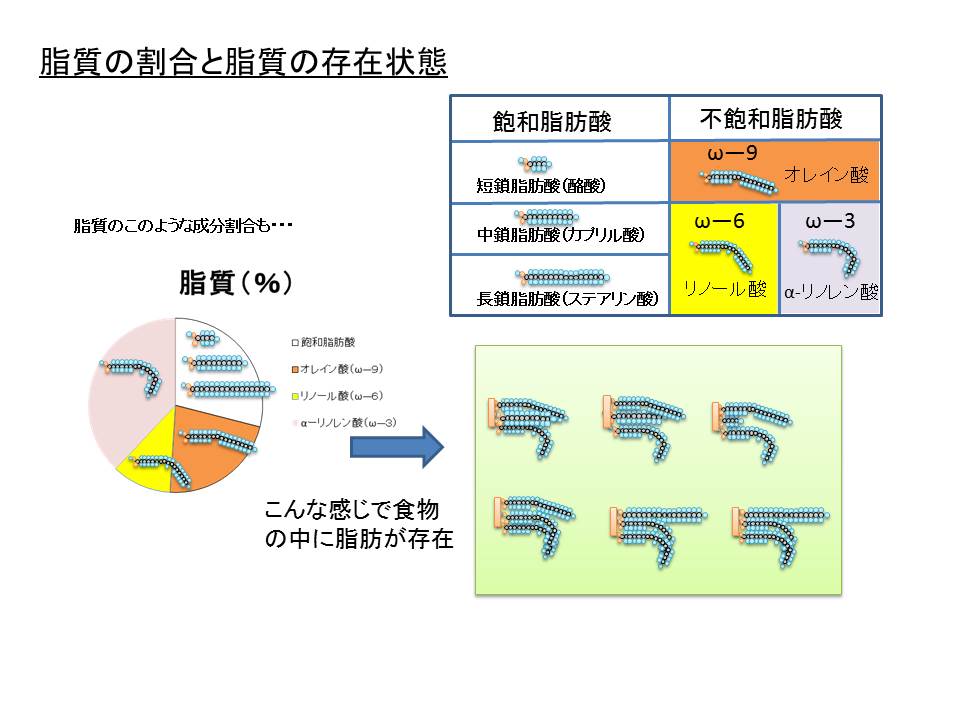 脂質の中でも体脂肪として蓄積されやすい要因になるのは、主に「長鎖脂肪酸」の量です。