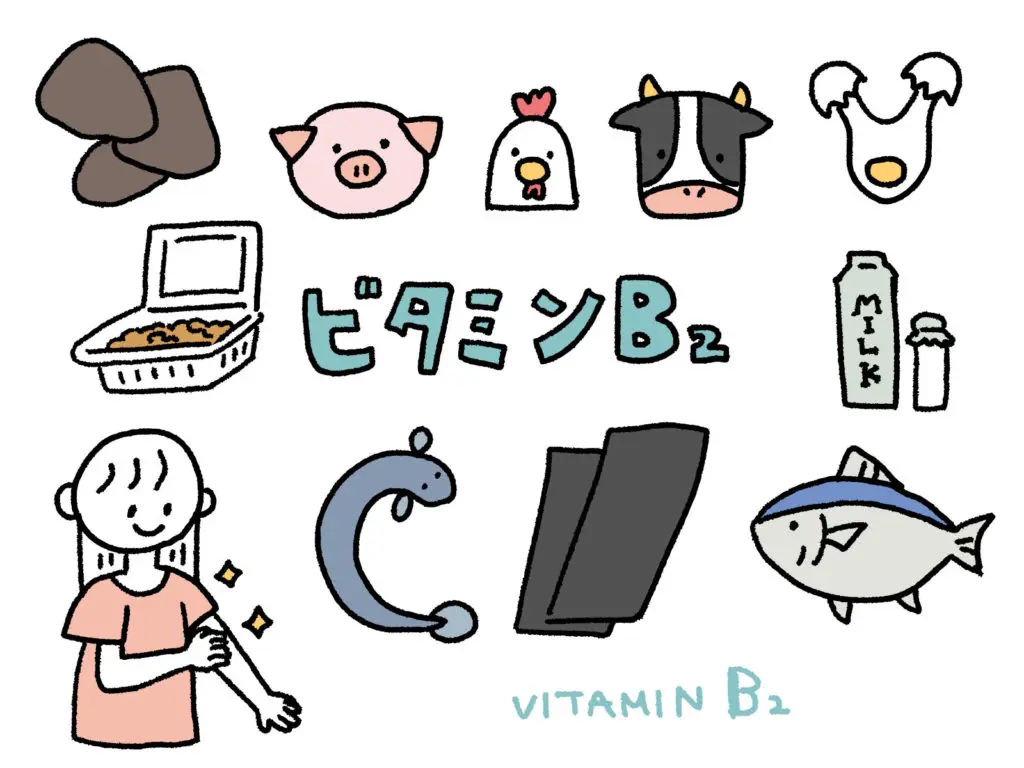 ビタミンB₂は、体を構成する細胞の新陳代謝を助け、健康な皮膚・髪・爪をつくり、成長を促す働きがあります。そのため、別名「発育ビタミン」とも呼ばれます。