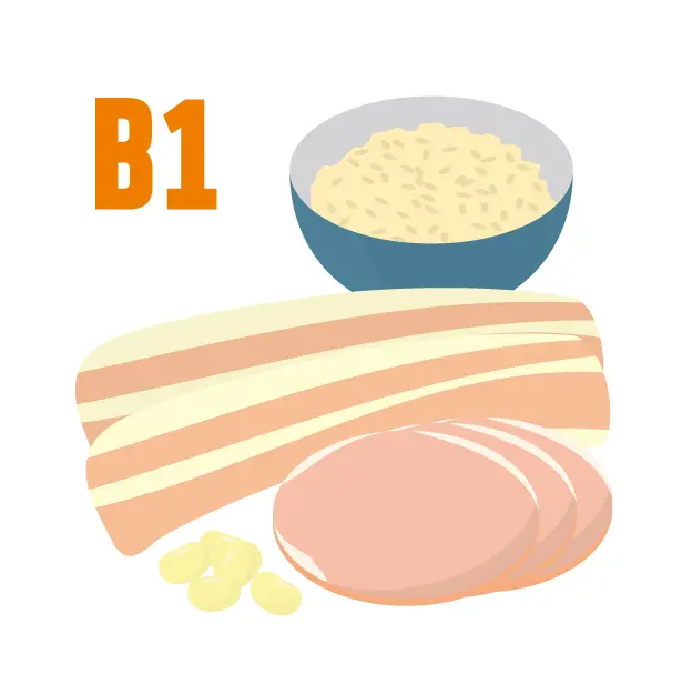 また、ビタミンB₁は脳や神経の主要なエネルギー源として働き、中枢神経・末梢神経の正常な機能を支え、集中力や記憶力の維持にも関わっています。